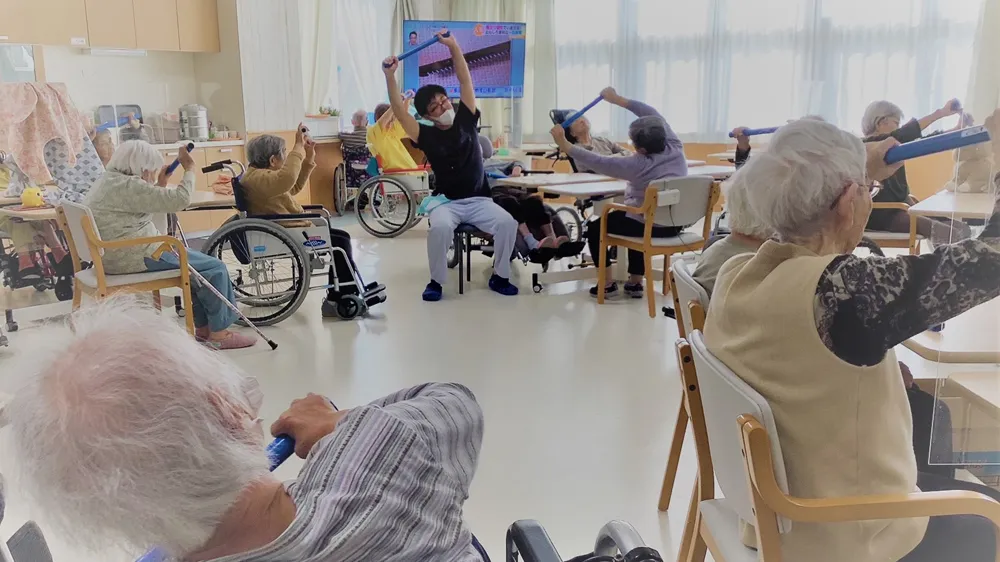 基本的な日常動作能力の維持・向上を目的に機能訓練を行います。また、看護師による健康管理を行います。入浴や水分補給、各種アクティビティを行います。
